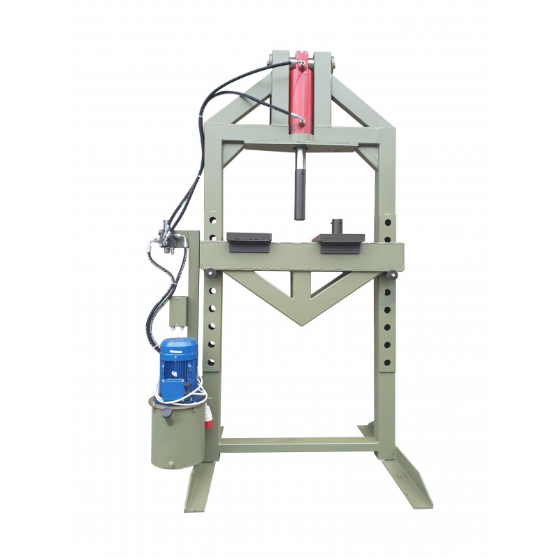 Гідро-електричний підлоговий прес призначений для випрессовкі, запресовки, рихтування або гнучкі різних деталей. Зварна рама передбачає регулювання робочого стола по висоті в 9-ти положеннях.