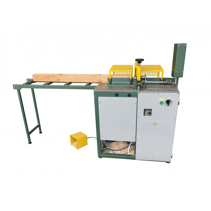 Верстат призначений для поперечного розкрою дошки або бруса максимальним перетином 100 х 100 мм або дошки 250 х 50 мм. Верстат може працювати в двох режимах: фіксації заготовки та подачі пилки за допомогою електричної педалі або за допомогою датчика. Другий режим роботи дозволяє встановити обрану довжину відрізуваної заготовки, для якої буде спрацьовувати датчик і виконувати фіксацію і розпил заготовки. У цьому режимі можна також відрізати шашки для паллетів. Для контролю лінії різання, на верстаті встановлений лазерний імітатор пропила.
