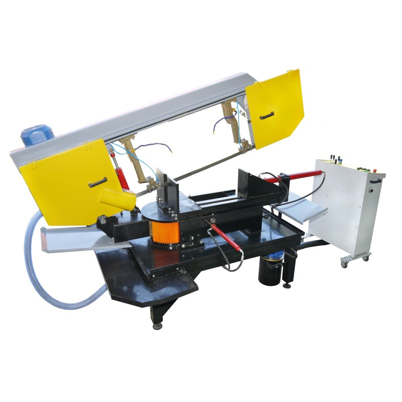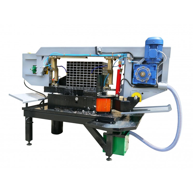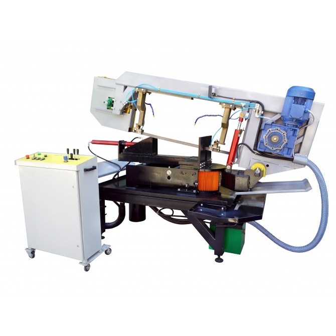 Горизонтальний стрічкопильний верстат призначений для високопродуктивного різання чорного і кольорового металу з максимальною шириною 600мм і максимальною висотою 450мм. На верстаті встановлений гідравлічний механізм плавного підйому і опускання каретки з ріжучим полотном. Притиск заготовки здійснюється регульованими пересувними гідравлічними лещатами. Можлива плавне регулювання швидкості подачі пили до 110 м / хв. Стрічкова пила обладнаний системою автоматичної подачі МОР і карцовочной щітки для видалення стружки з стрічкового полотна. Пильна рама може змінювати кут різання в обидві сторони (-60 - 0 - 60 градусів). Кут різання контролюється по електричному кутоміром.